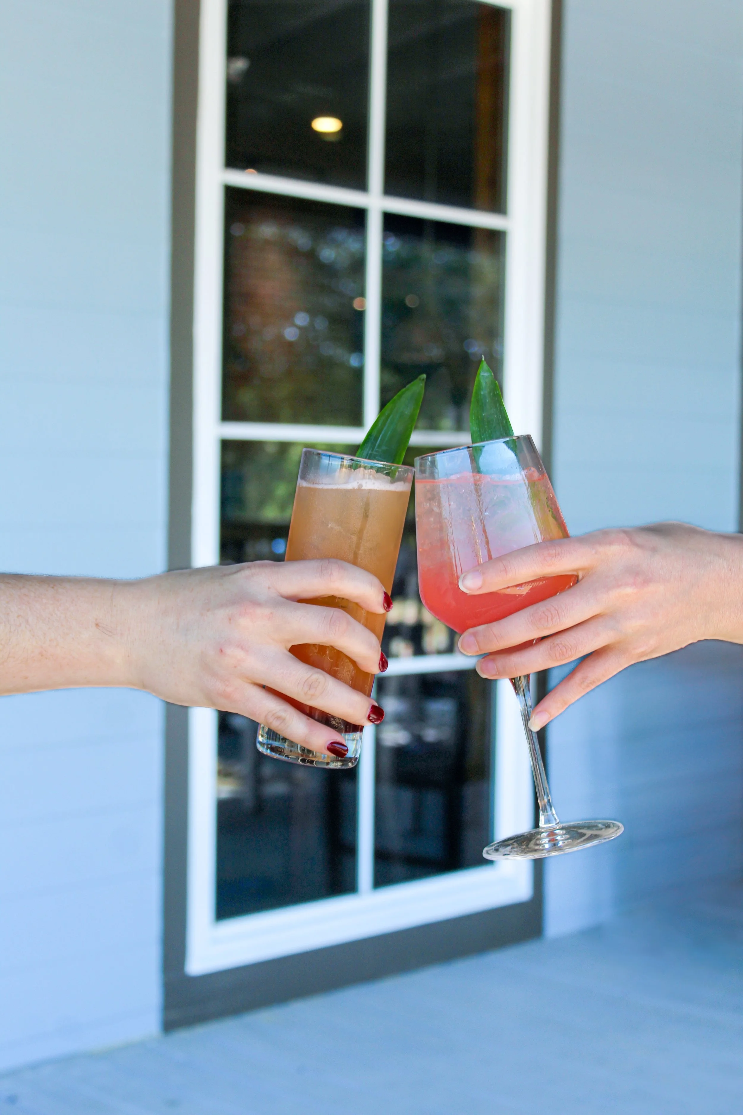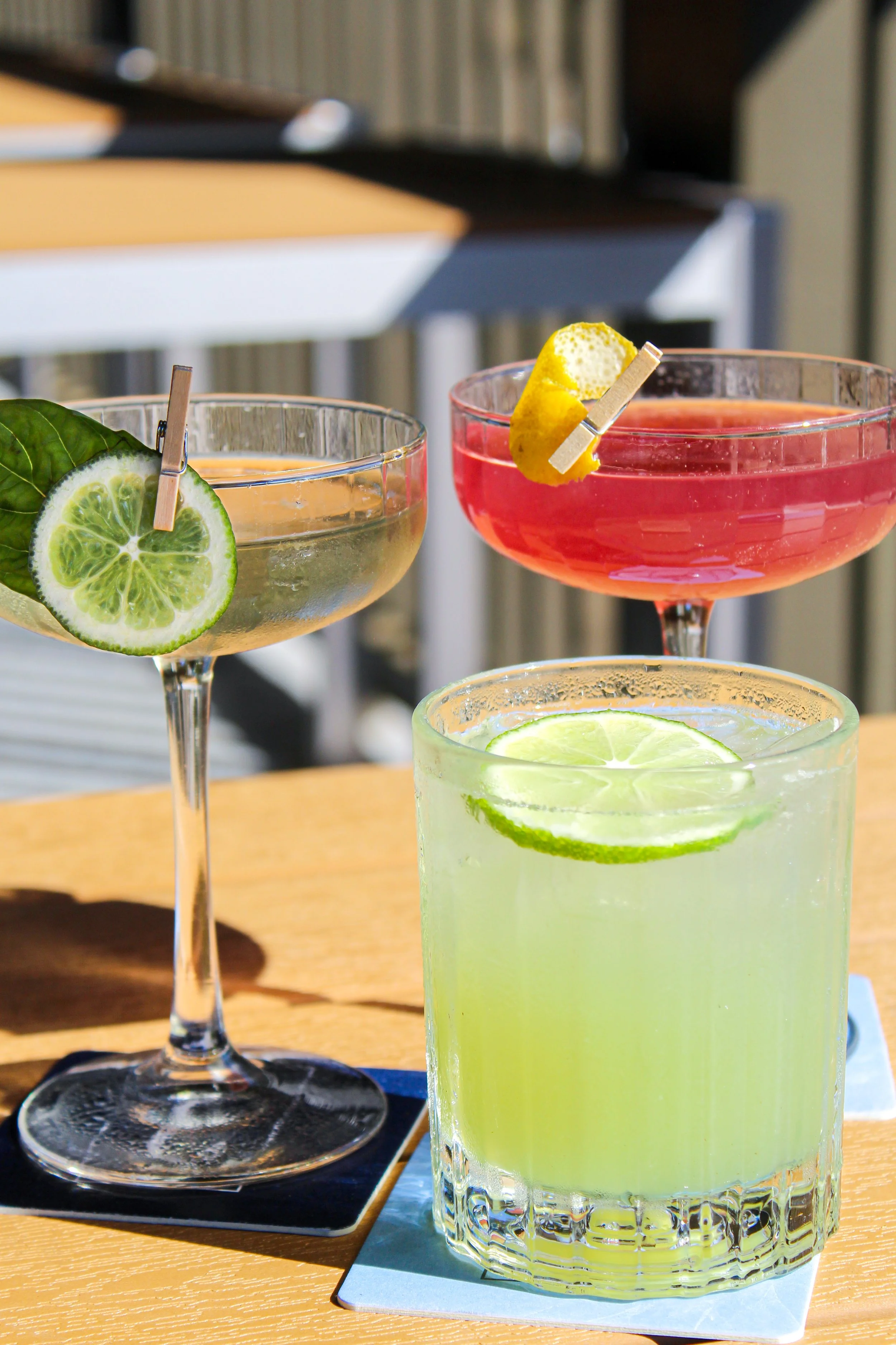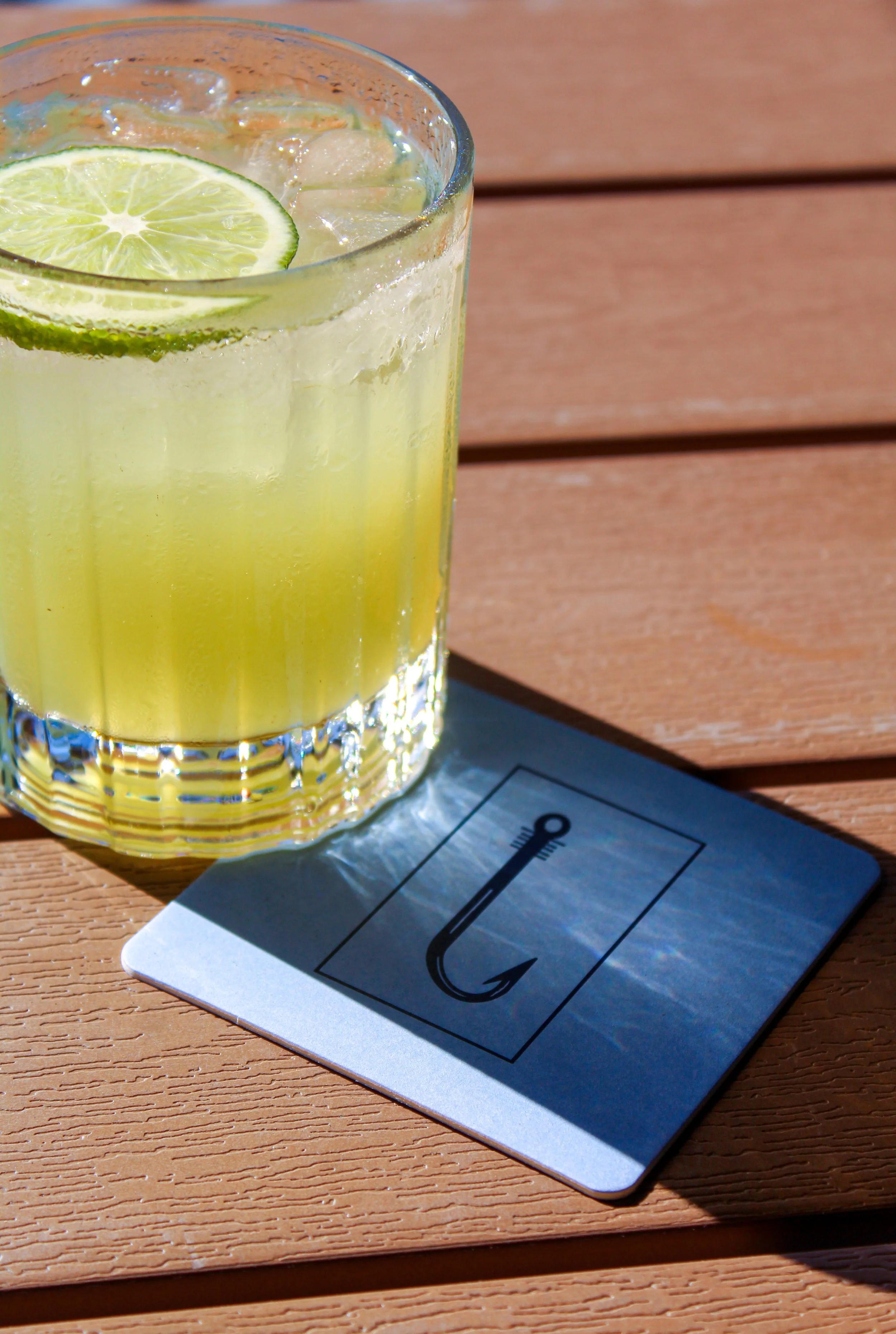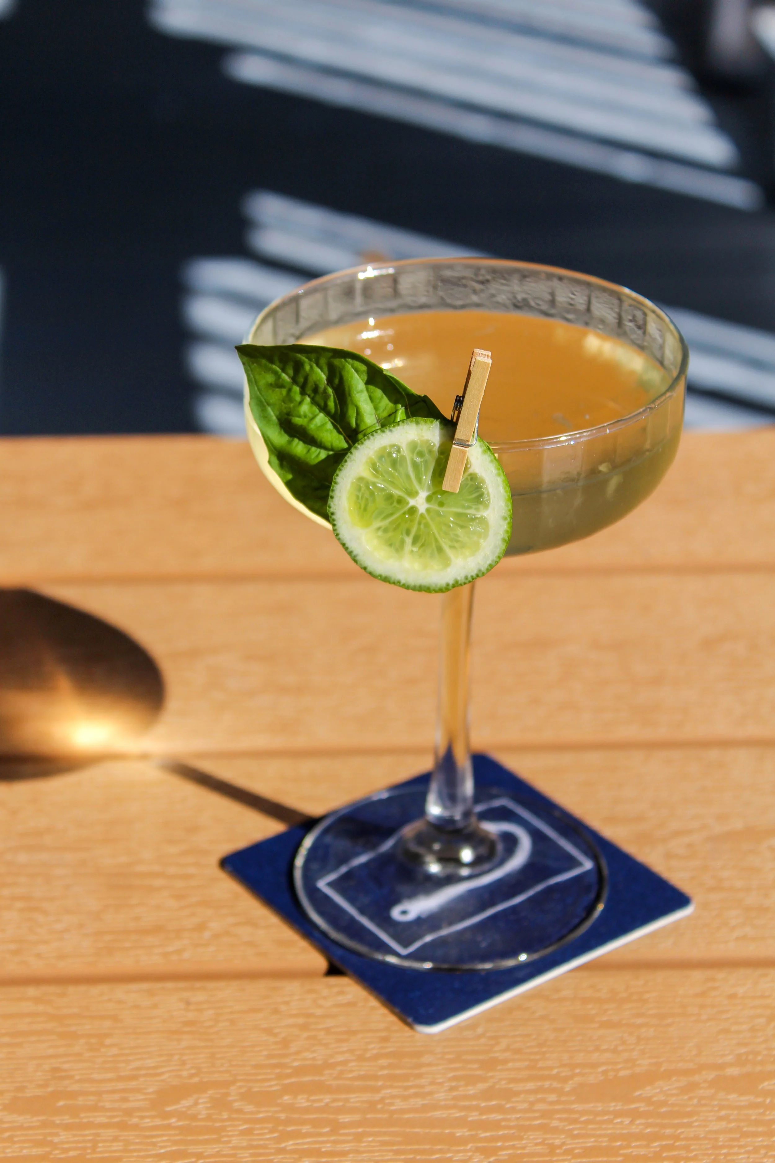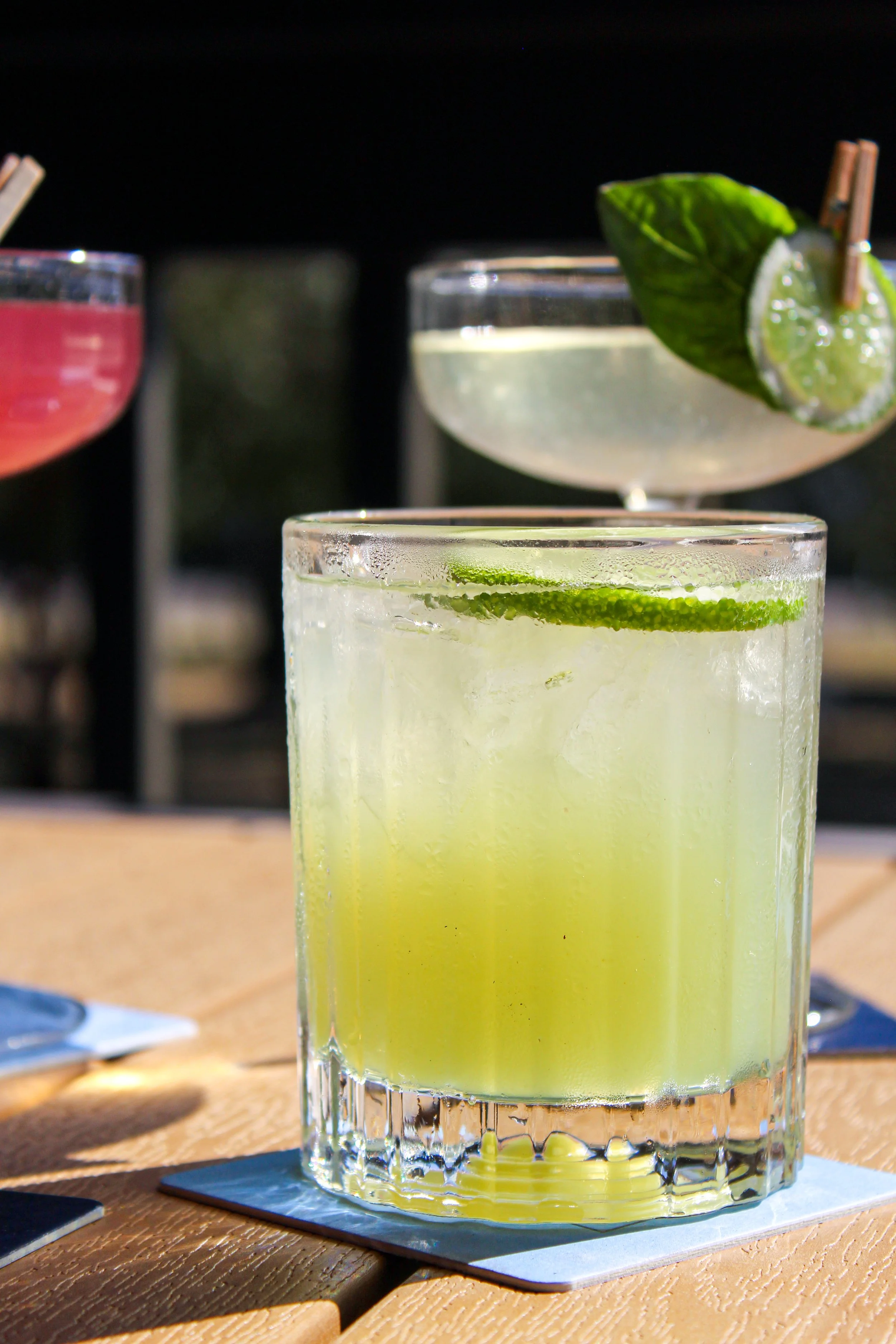 Refreshing craft cocktail at Catch 110 in Biloxi, served on the patio and garnished with basil and lime — a signature drink for Gulf Coast dining.